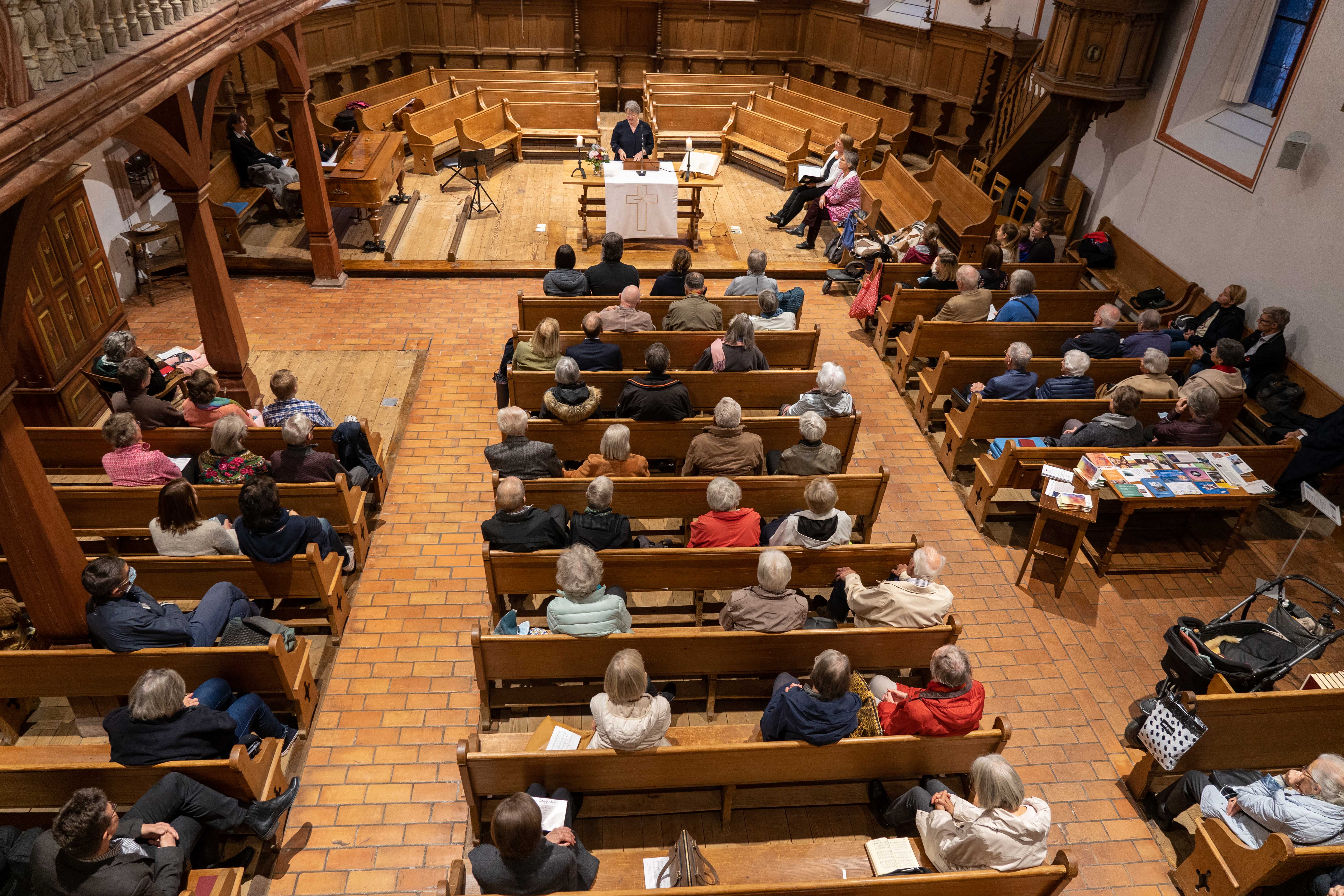 Am 15. Oktober um 18.30 Uhr versammelten sich viele Interessierte, um die Buchvernissage des nun erschienenen Buches 'In Beziehung Sein' (TVZ) in der Dorfkirche in Riehen und im Meierhof mitzuerleben. EKS Präsidentin Rita Famos, Kirchenrätin der ERK Basel-Stadt Monika Widmer und die katholische Theologin und Palliativbeauftragte des Kanton Zürich Lisa Palm gratulierten dem ökumenischen Verein und den Autorinnen und konnten zum Ausdruck bringen wie sehr das Engagement für Palliative Care für Kirche und Gesellschaft wichtig sei.
