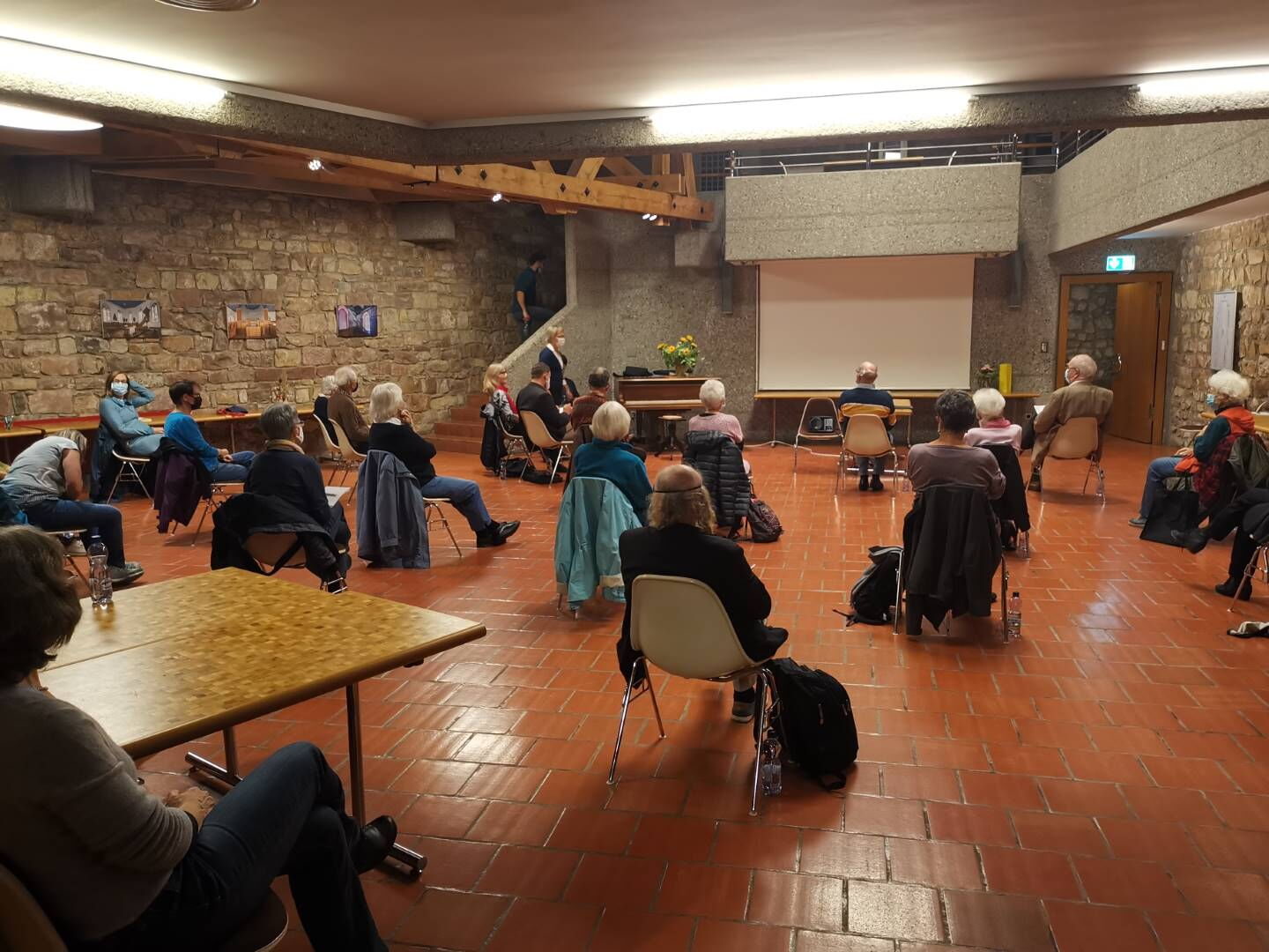 Nach dem Vortrag wurde im Plenum auch diskutiert. Die Teilnehmenden waren berührt von den persönlichen Beiträgen von Fulbert Steffenksy und fanden es sehr erleichternd, dass er immer wieder Mut machte, unsere Fragmenthaftigkeit anzunehmen und dennoch aus der Dankbarkeit und dem Gottvertrauen zu leben.